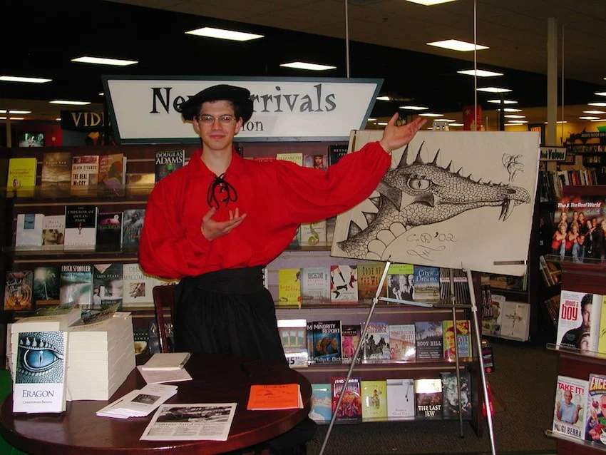 “The manuscript was sent to press and the first books arrived in November 2001. The Paolini family spent the next year promoting the book at libraries, bookstores, and schools in 2002 and early 2003.”