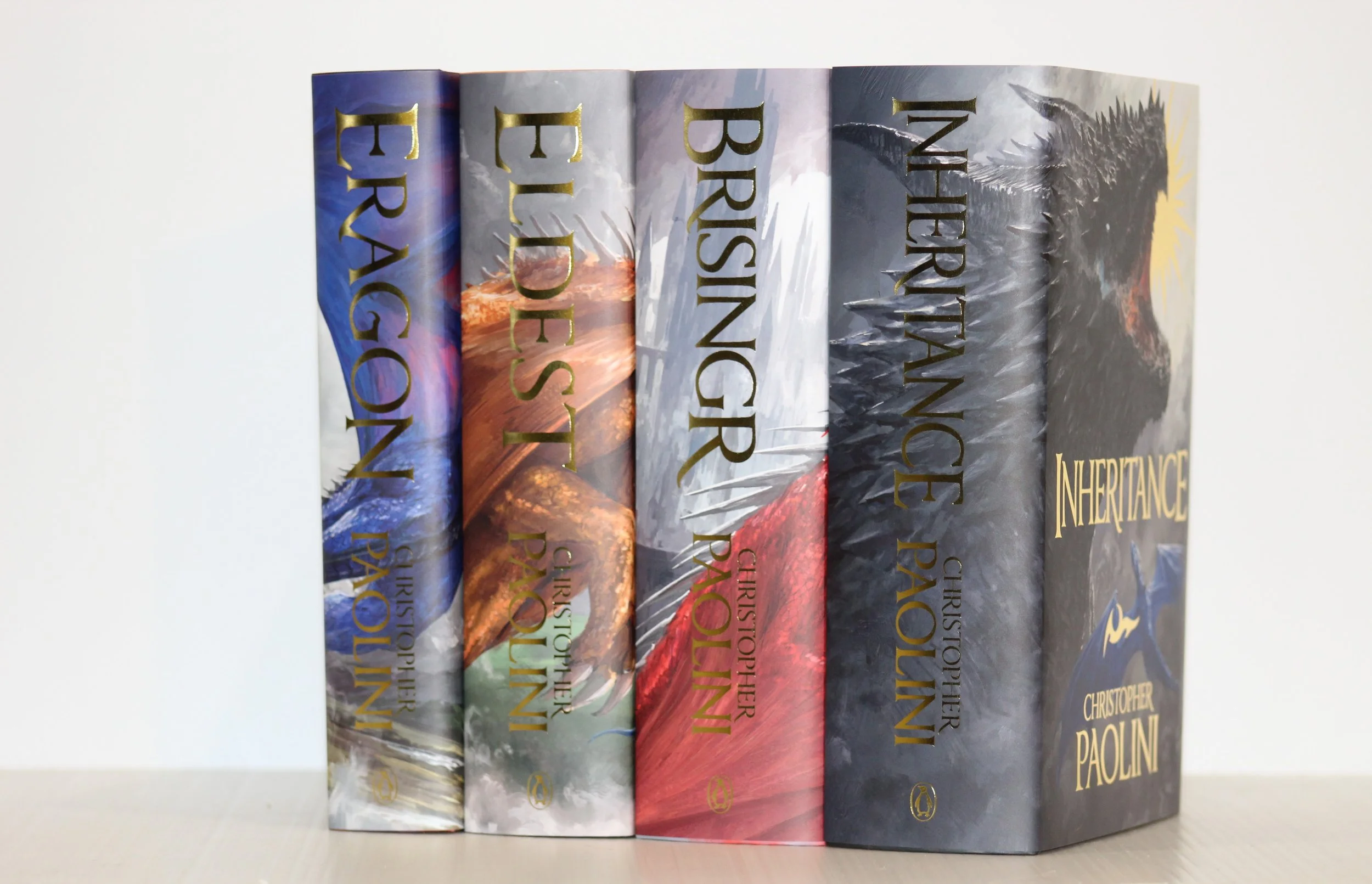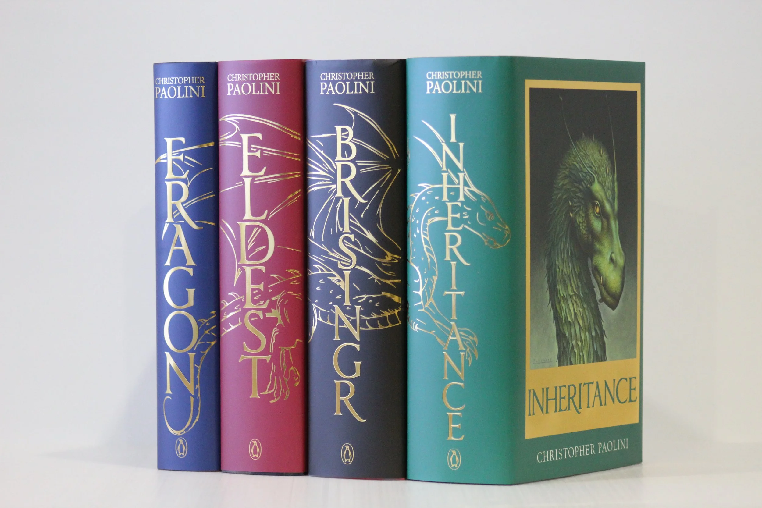 The Broken Binding editions of the Inheritance Cycle were first teased on October 29, 2024. The art direction was done by Eon van Aswegen and Petrik Leo. (Petrik worked mostly on the dust jackets and Eon on everything else.) With Christopher's agreement, the dragons on the covers were reordered/changed to better suit their roles in the books. 10,000 sets were printed, with Christopher hand-signing 40,000 tip-in sheets. These books contain no extra text content.
